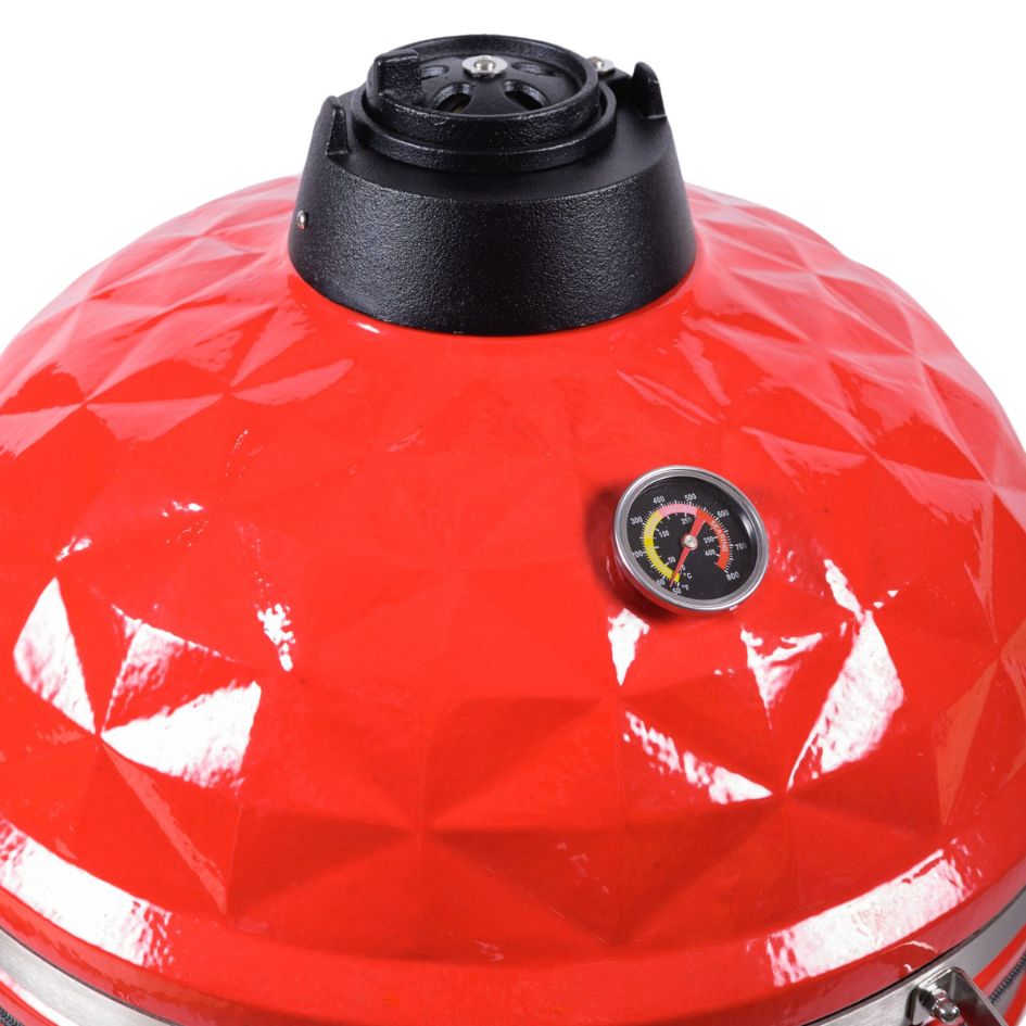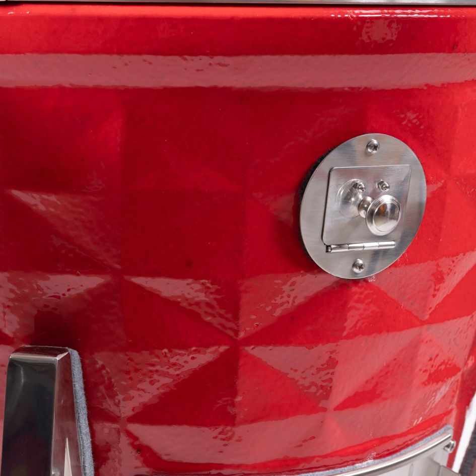 Todos los elementos metálicos son de acero inoxidable lo que permitirá usarlo tanto en la ciudad, el campo o en la playa. Al mismo tiempo le dará un acabado de primera calidad y gran elegancia. Cada kamado incluye una funda de lona de alta resistencia para protegerlo de la lluvia, pinzas para tomar la parrilla cuando está caliente, atizador para retirar las cenizas que se depositan en el fondo, 2 medias lunas de cerámica que te permitirán lograr cocción indirecta usando toda la superficie de la parrilla, un smoker que te permitirá agregar chips ahumadores directamente al carbón. Por último, te entregaremos dos medias lunas de parrillas para cocinar a distintos niveles con nuestro accesorio “Divide & Conquer”